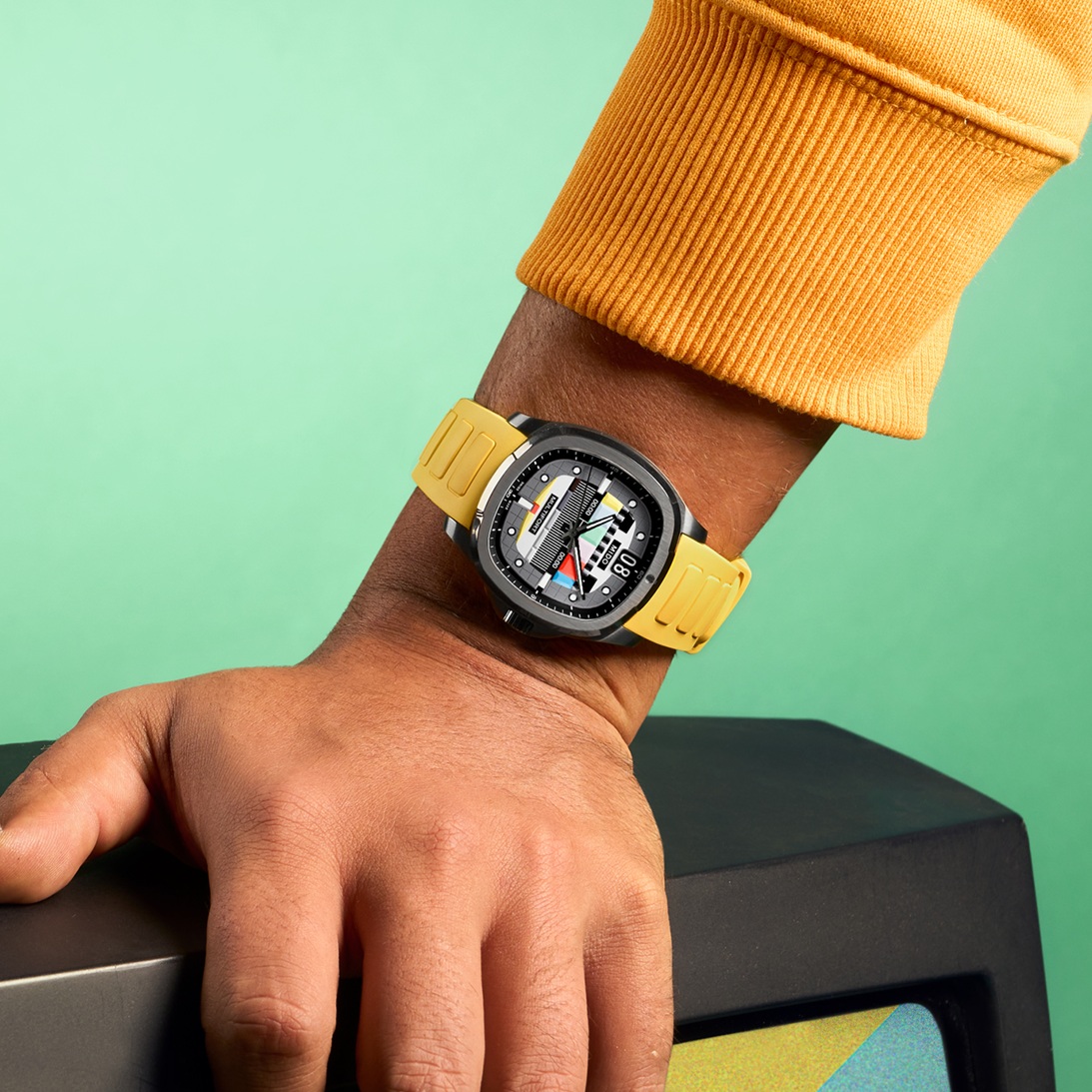 Pouzdro ve tvaru televizoru a náramek jsou vyrobené z ušlechtilé oceli se šedou PVD úpravou připomínající surový kov. Tuto barvu PVD pro monochromatičtější vzhled vidíme v kolekci poprvé. Dva přídavné kaučukové řemínky, jeden jasně modrý a druhý jasně žlutý, dodávají této televizní hvězdě barevný nádech. Tato speciální edice je ukázkou vynalézavosti a dokonalé hodinářské odbornosti značky. Sezóna 1, díl 2: dobrodružství pokračuje s touto pozoruhodnou hlavní hvězdou, která se vrátila, aby si svým retro vzhledem ukradla pořad.