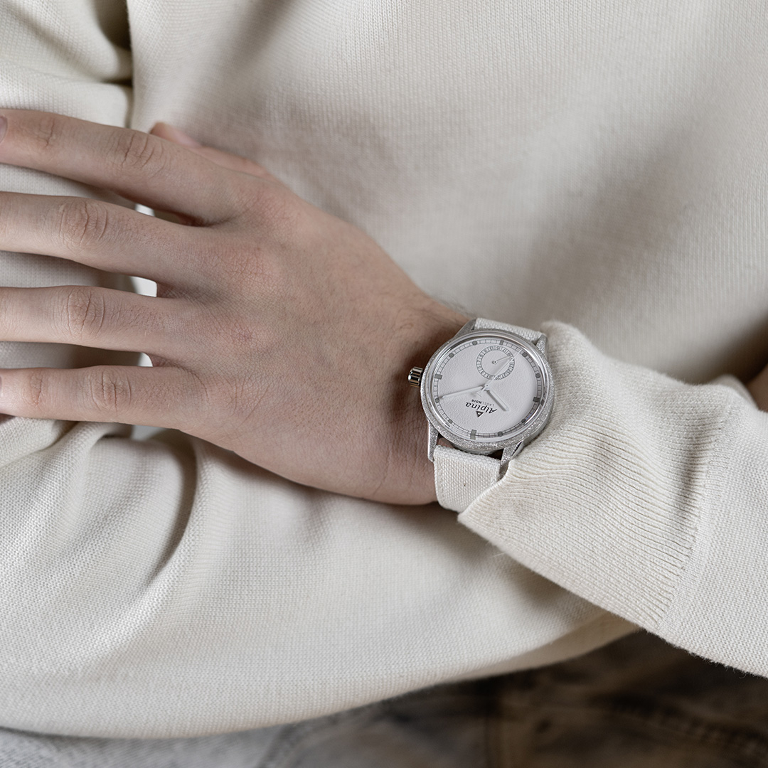 Pouzdro z nerezové oceli o průměru 41,5 milimetru zaujme tepanou lunetou a úchyty, které evokují čerstvě napadaný prašan. Číselník s jemnou zrnitou strukturou v křišťálově bílém provedení tento mrazivý dojem ještě umocňuje. Designové studio Label Noir vytěžilo spolupráci naplno. Nové povrchové úpravy pouzdra, číselníku i ručiček posouvají model do zcela nové dimenze.