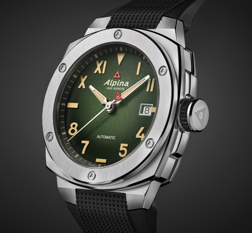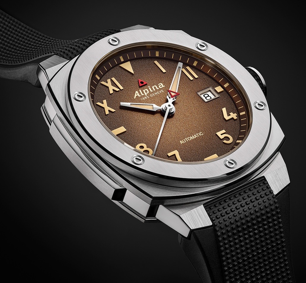 Obě novinky mají menší ocelové polštářkové pouzdro o velikosti 39 x 40,5 milimetru v kombinaci s pískovaným gradientním číselníkem. První varianta si hraje s odstíny hnědé, zachycuje tóny zapadajícího slunce. Směrem k okraji postupně přechází hnědá do téměř černé, kde vynikají luminiscenční indexy v působivém kontrastu. Druhá verze pak láká temně zeleným číselníkem, který odkazuje na touhu dobývat alpské vrcholy a dokonale tak vystihuje outdoorového ducha celé kolekce Alpiner Extreme. Praktický kaučukový řemínek černé barvy s překlápěcí sponou dotváří sportovní vzhled hodinek.